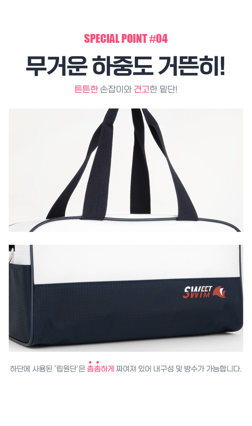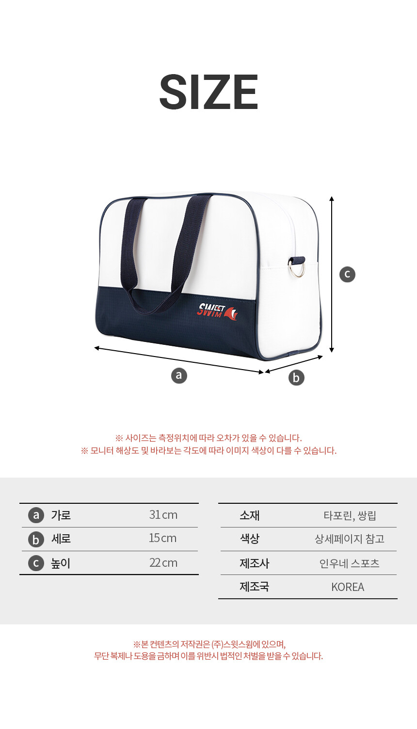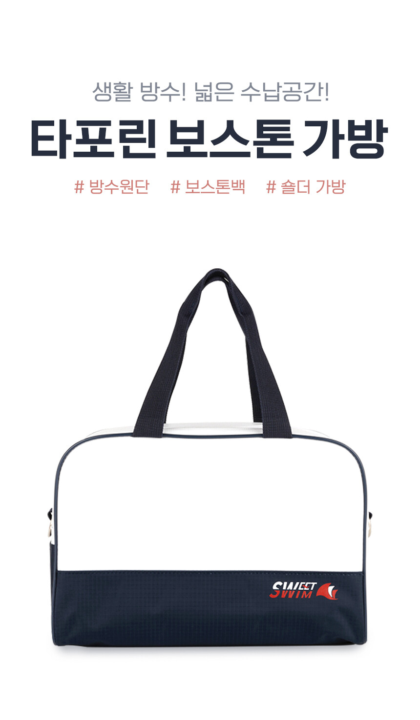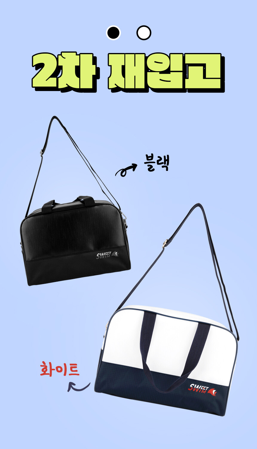 짐이 많으신 분들을 위해 사이즈를 늘리고 편의성을 위해 어깨 크로스끈까지 준비된 스윗스윔 보스톤 가방!