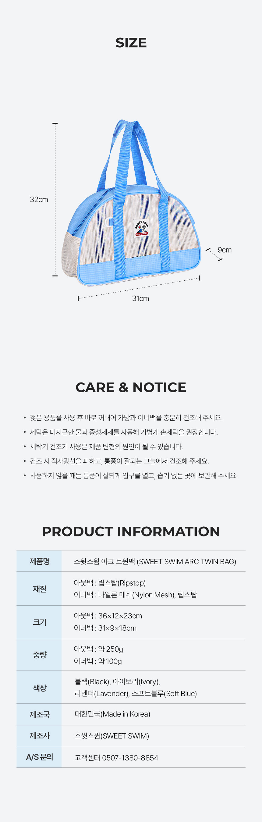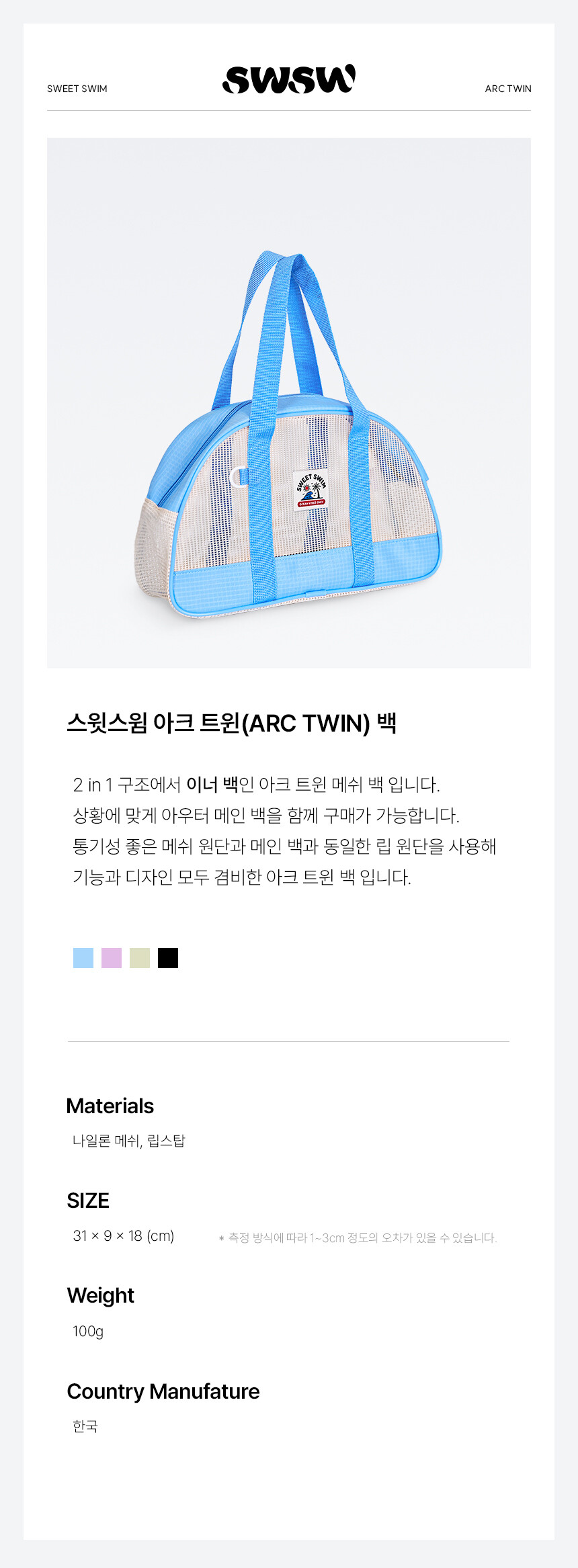 바로 스윗스윔에서 새롭게 출시한 ‘아크 트윈백(Arc Twin Bag)’ 입니다.