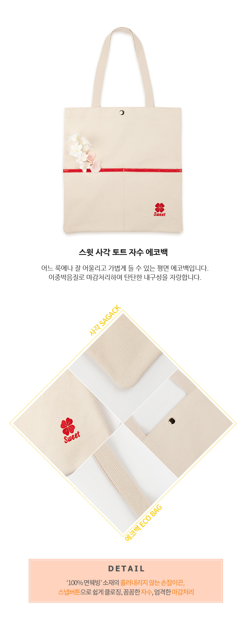 어느 룩에나 잘 어울리고, 가볍게 들 수 있는 평면 에코백입니다. 이중 박음질로 마감처리하여 튼튼한 내구성을 자랑합니다.