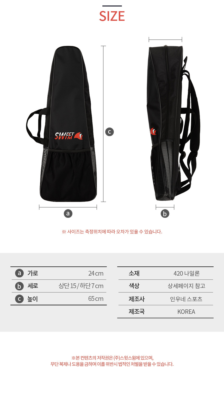 스윗스윔 핀 백팩 오리발 가방