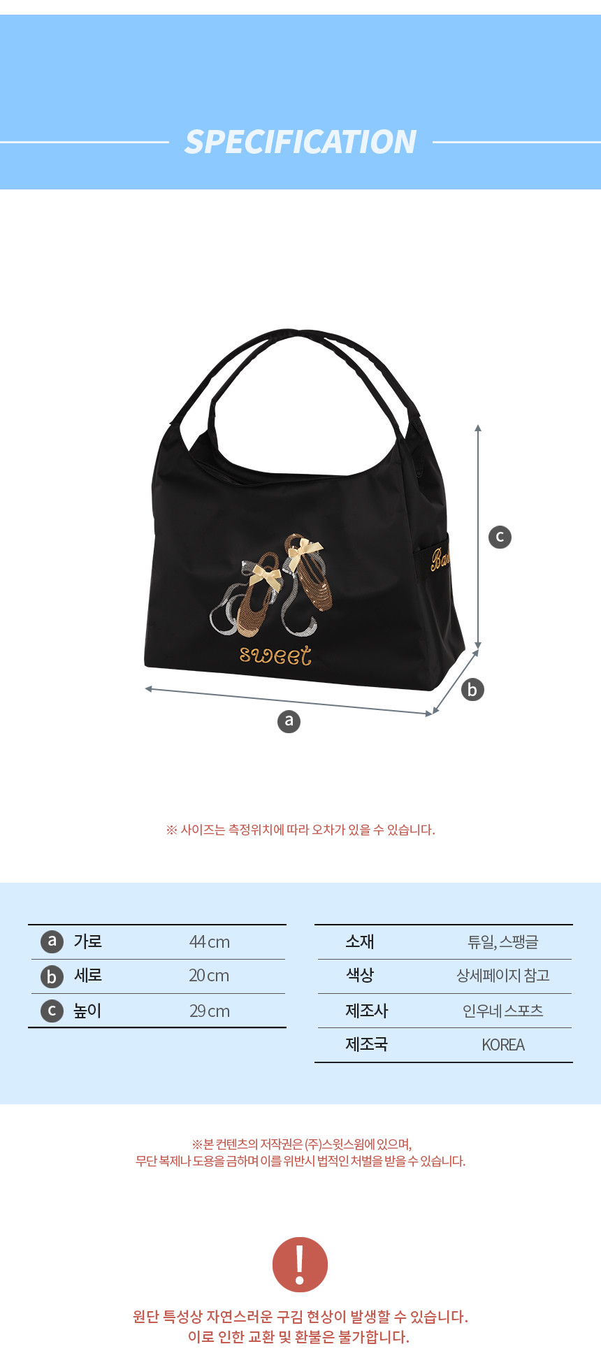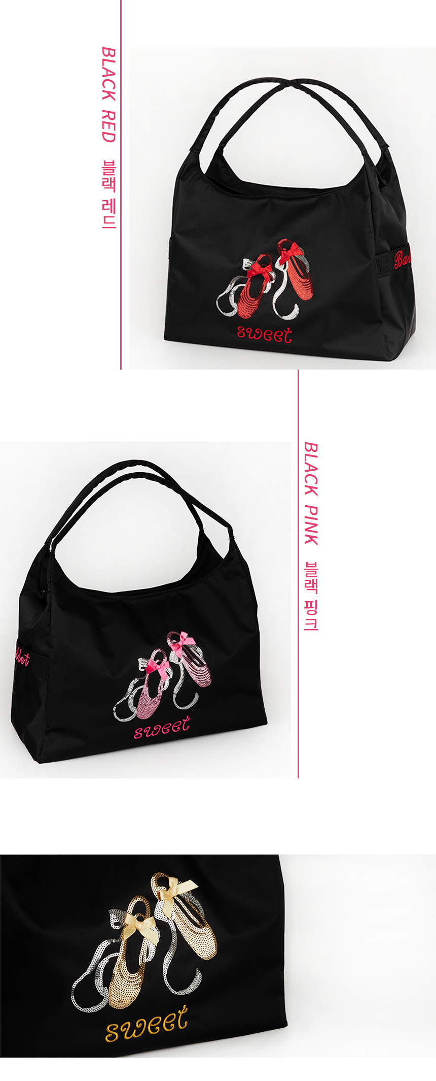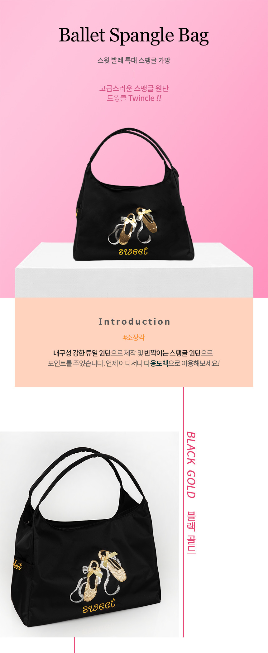 내구성이 강한 튜일원단과 팡팡 튀는 스팽글로 로고에 포인트를 주어 어디서나 들고 다니기에 좋은 다용도 가방입니다.