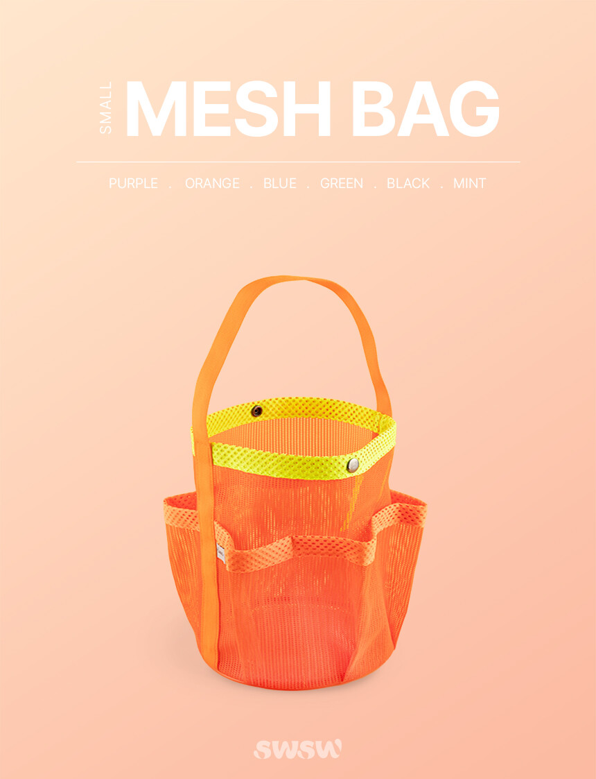 02) 미니 라운드 메쉬 파우치 - 오렌지
