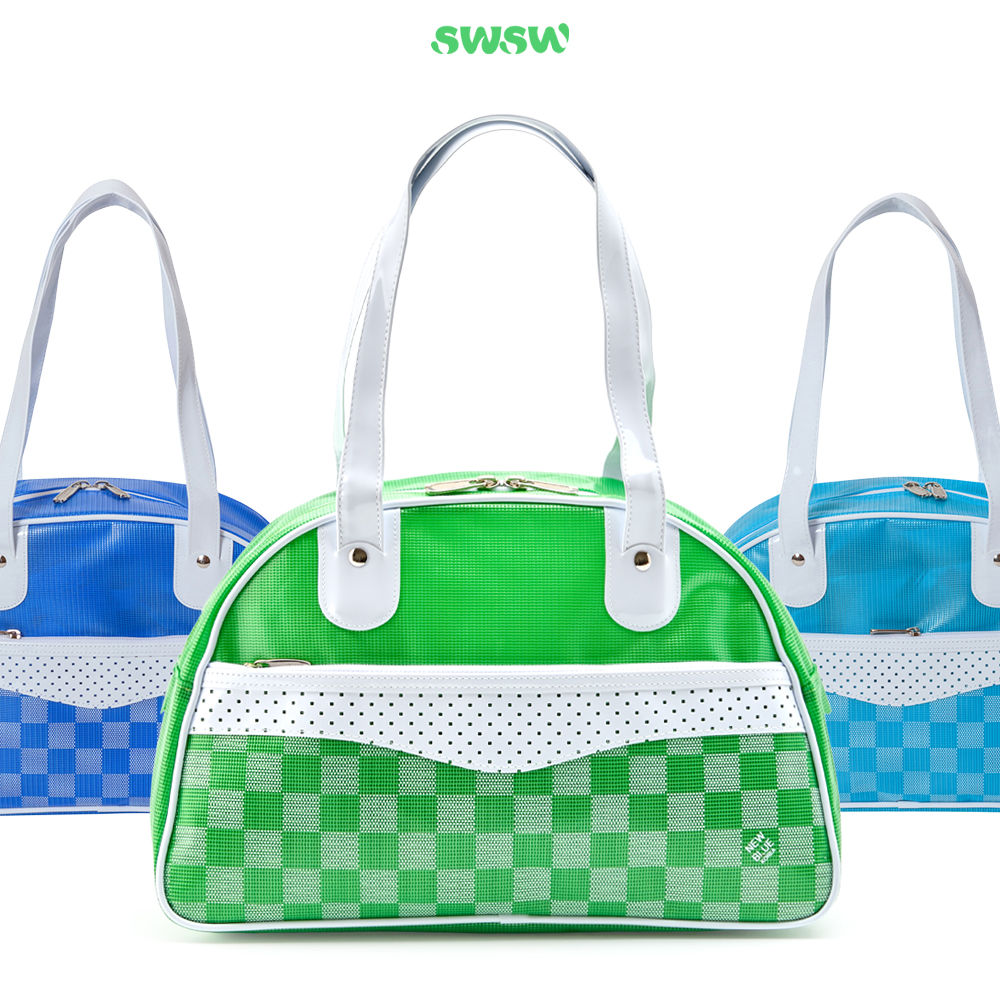 생활방수에 강한 타포린 소재의 반달형 수영가방. 부드러운 곡선 디자인과 넉넉한 수납공간으로 수영복, 타월, 운동용품까지 편리하게 수납 가능한 실용적인 스윔백입니다.