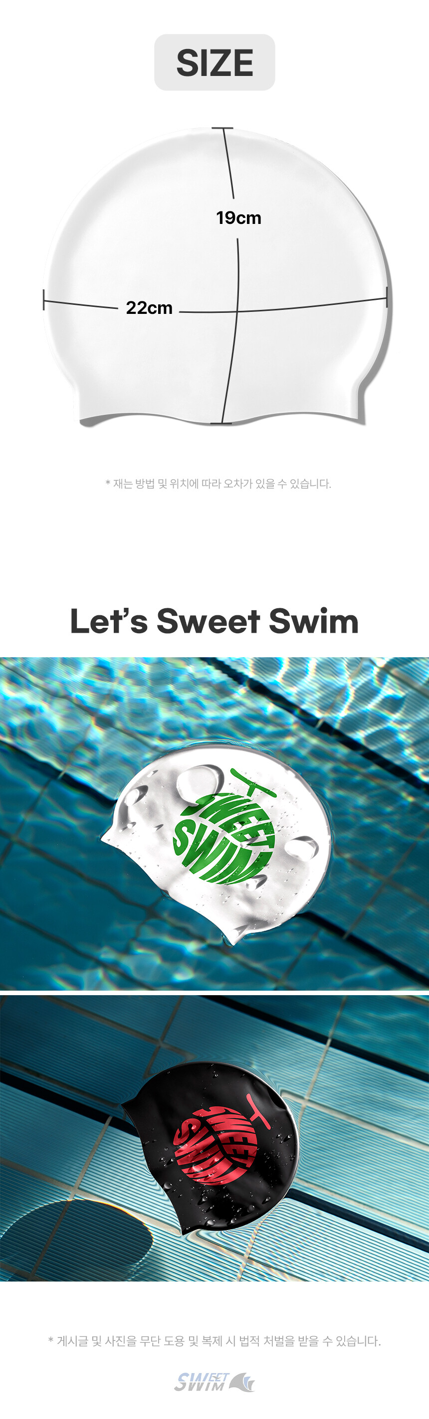 100% 고급 국산 실리콘을 사용한 스윗스윔 수영모자!