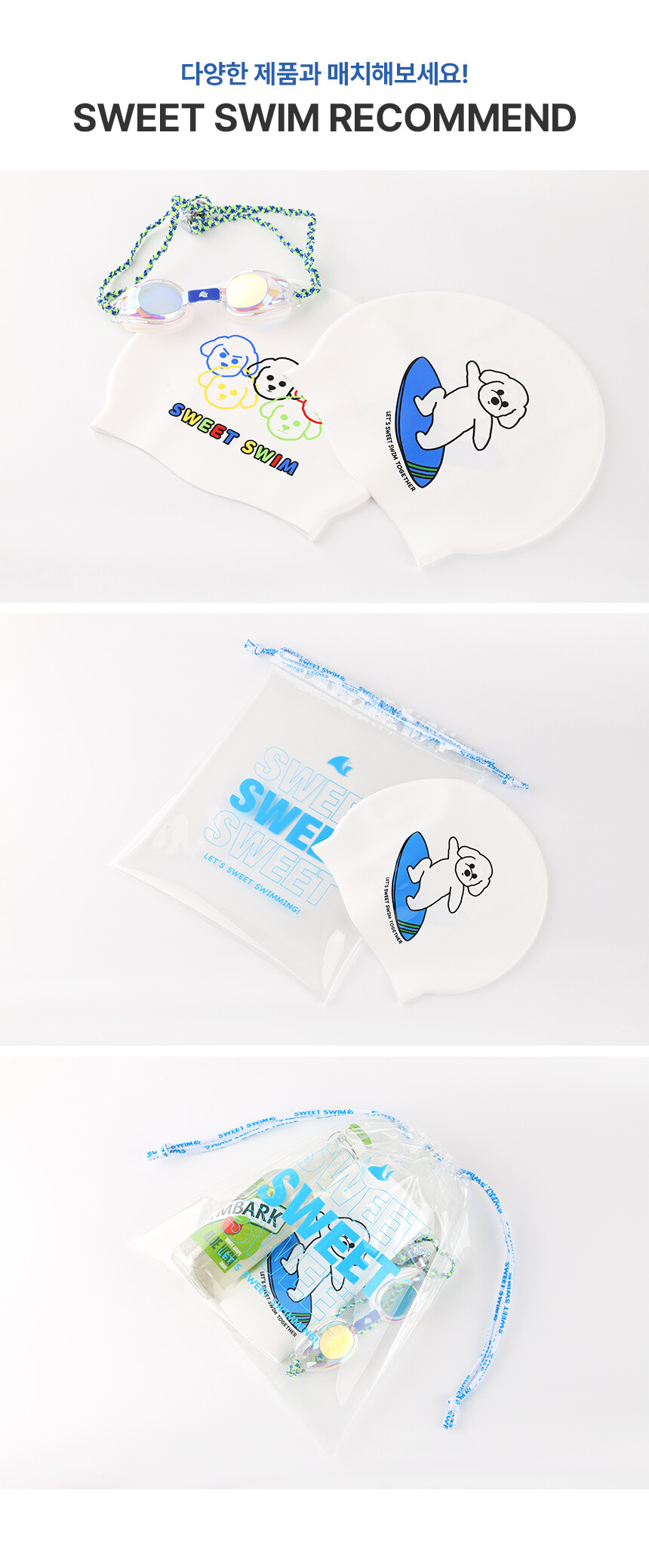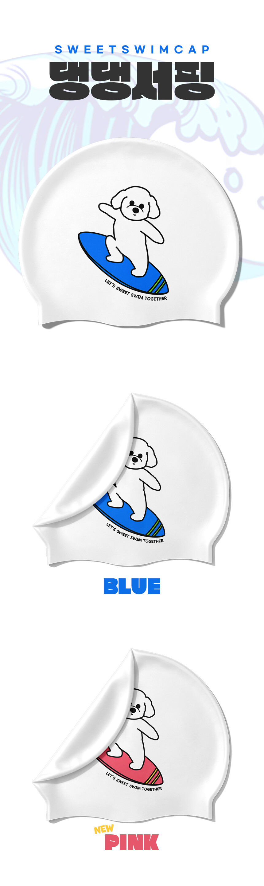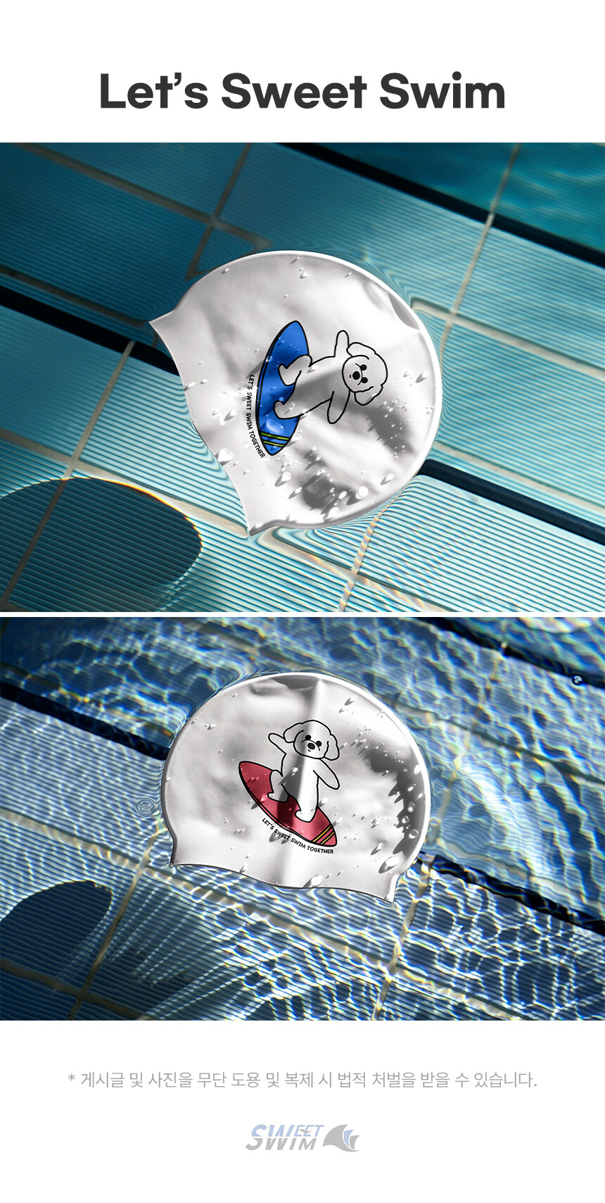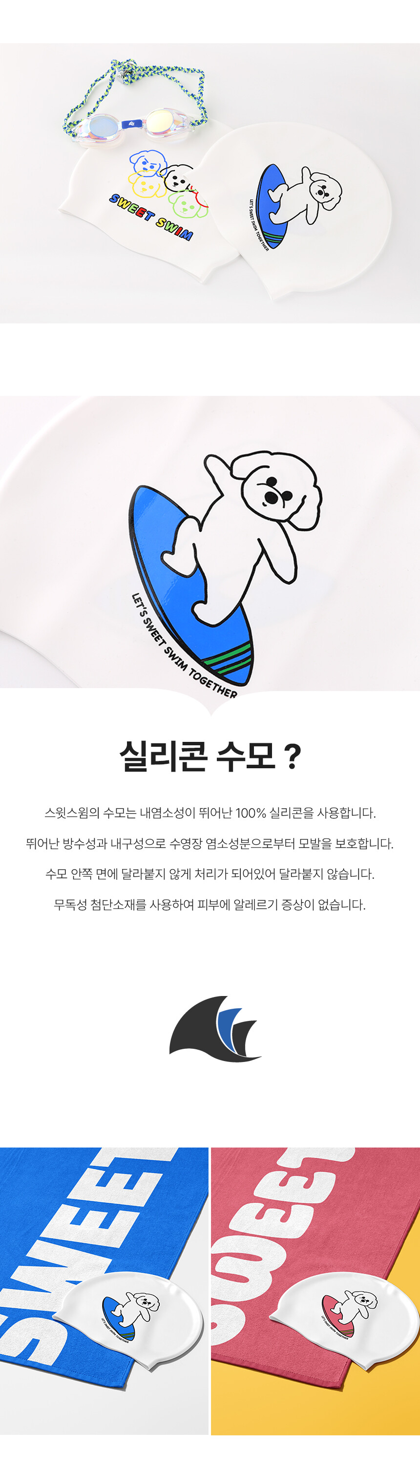 100% 고급 국산 실리콘을 사용한 스윗스윔 수영모자!