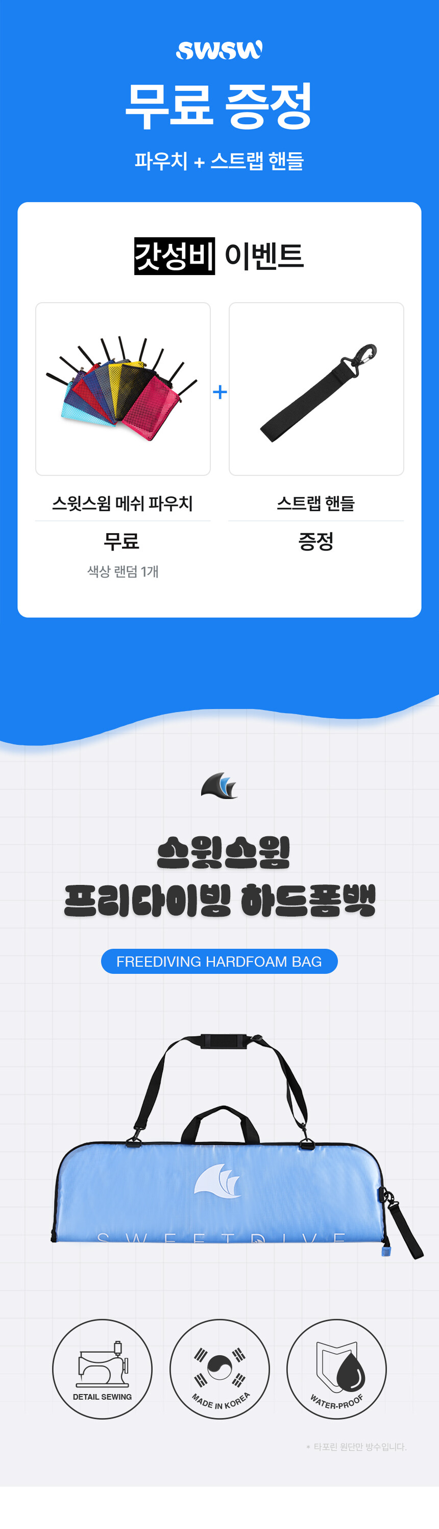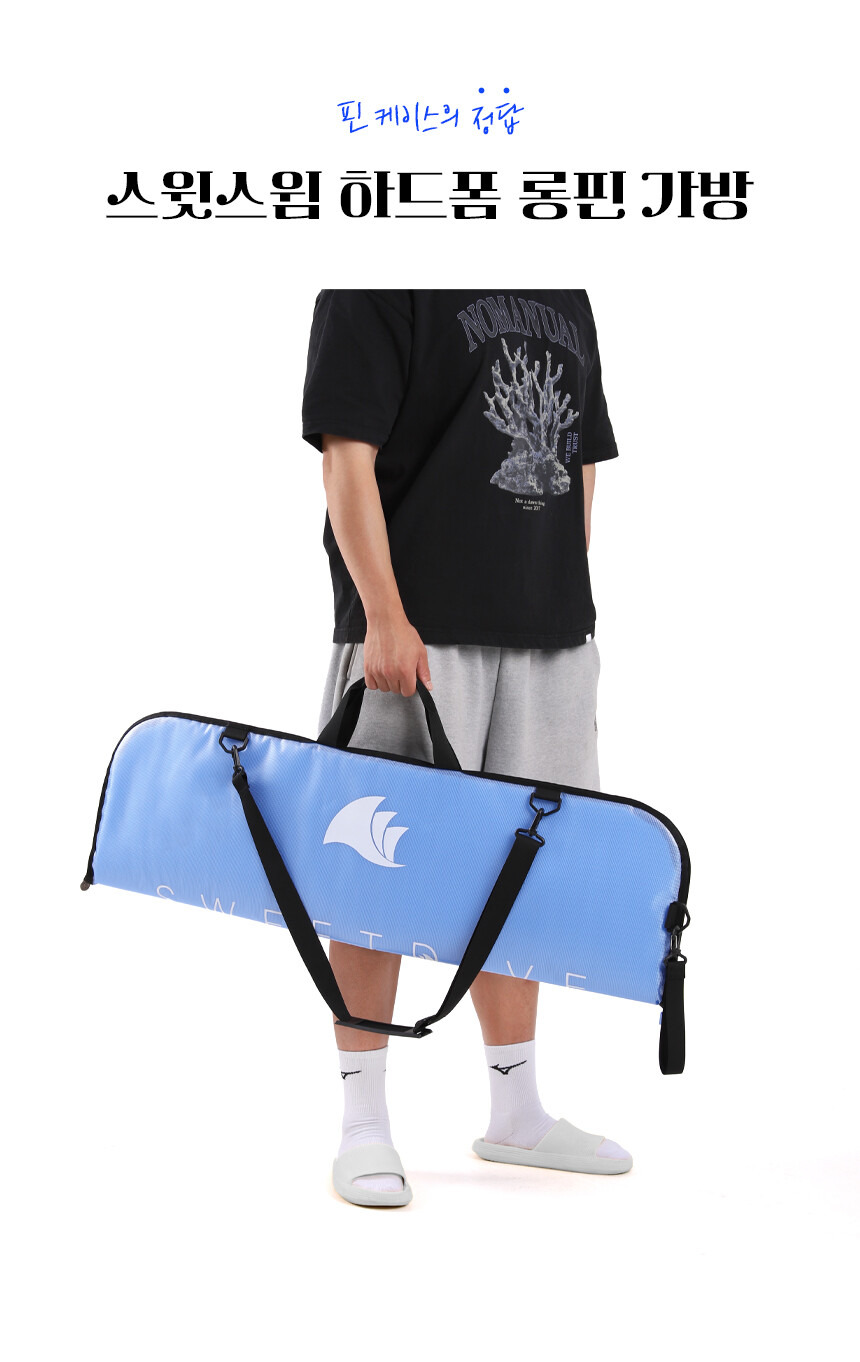 방수 타포린 원단과 하드폼 쿠션패드를 더하여 프리다이빙 핀을 보호해주는 스윗스윔 하드폼 핀 가방!