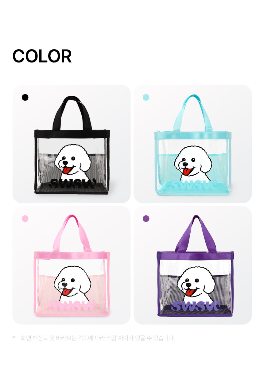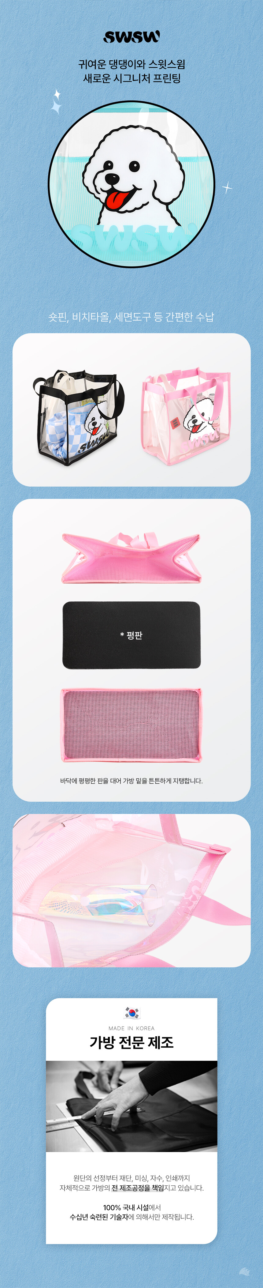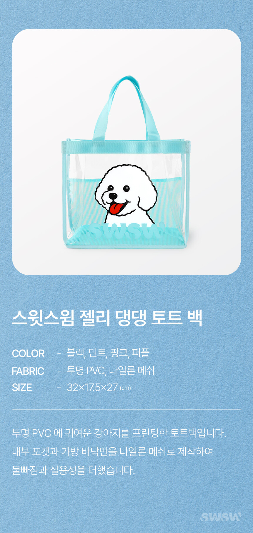 튼튼한 PVC로 내구성과 여유로운 수납공간 및 미니멀한 디자인 스윗스윔 젤리댕댕 토트백