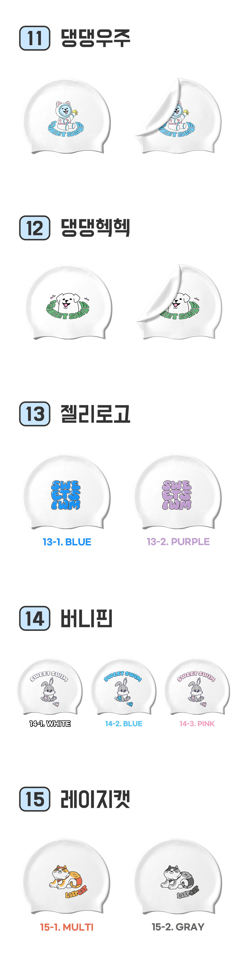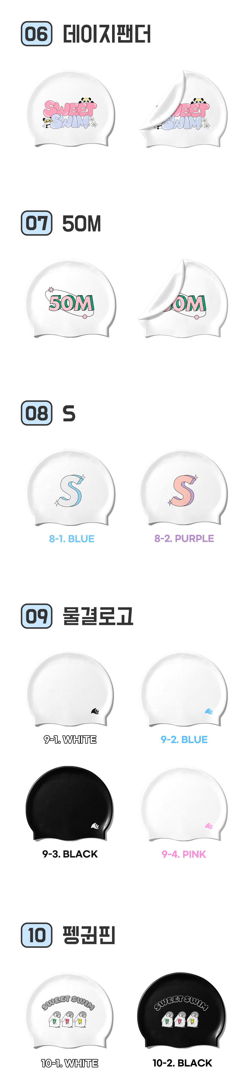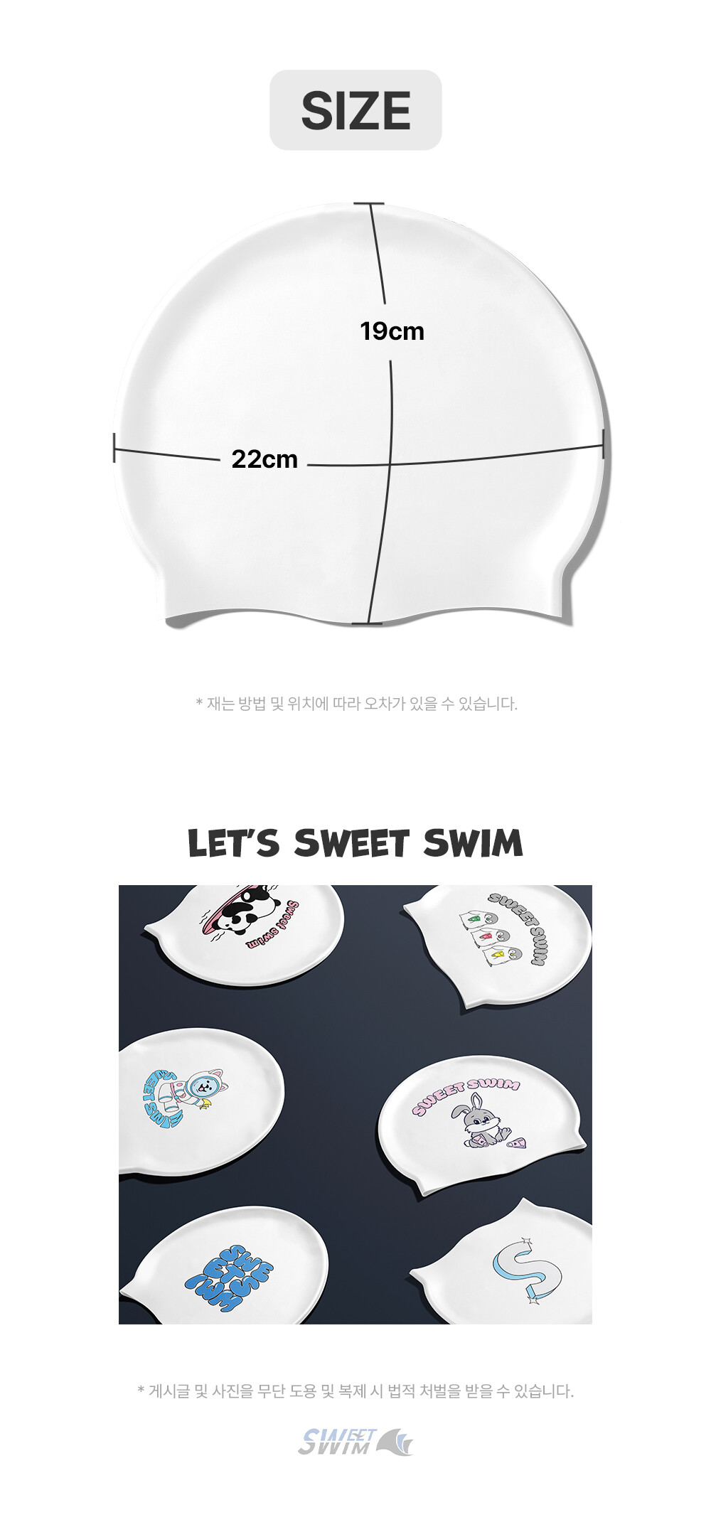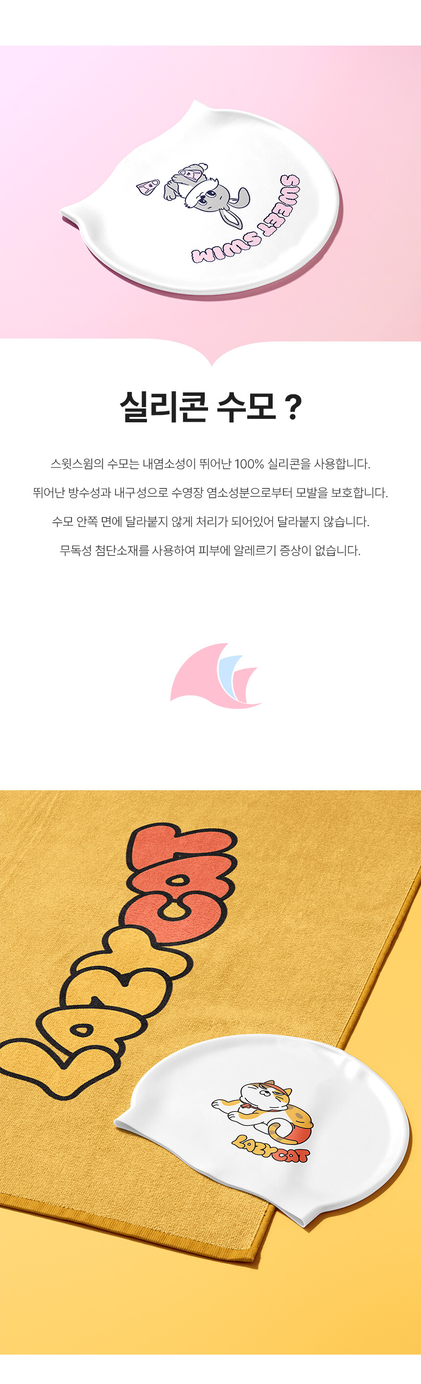 100% 고급 국산 실리콘을 사용한 스윗스윔 수영모자!