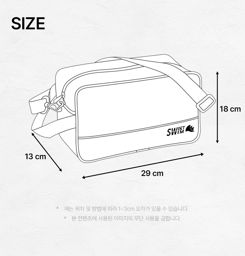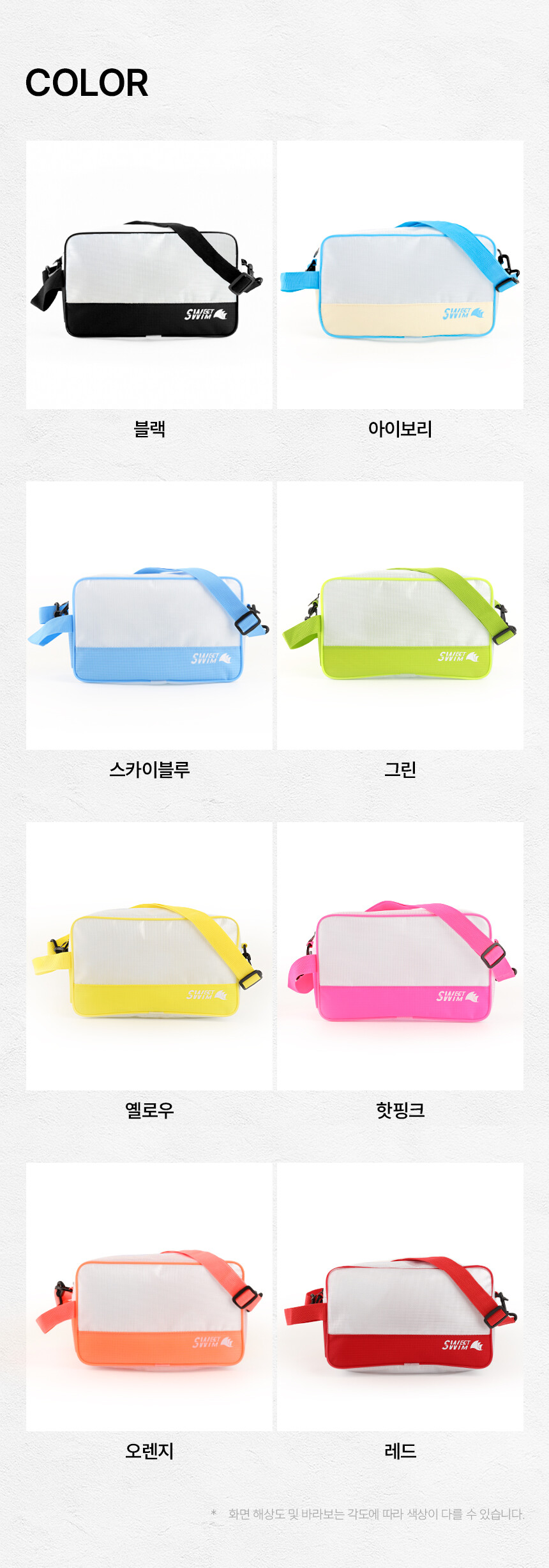 튼튼한 방수 소재로 내구성과 여유로운 수납공간 및 미니멀한 디자인 스윗스윔 투톤 포켓 사각 가방.