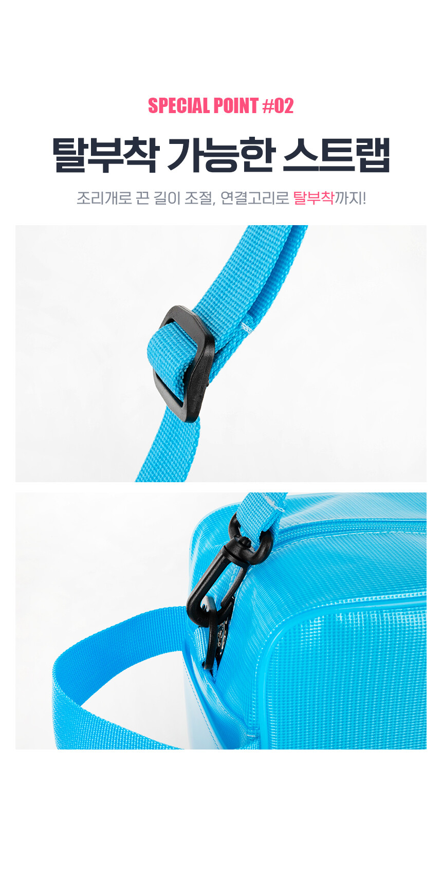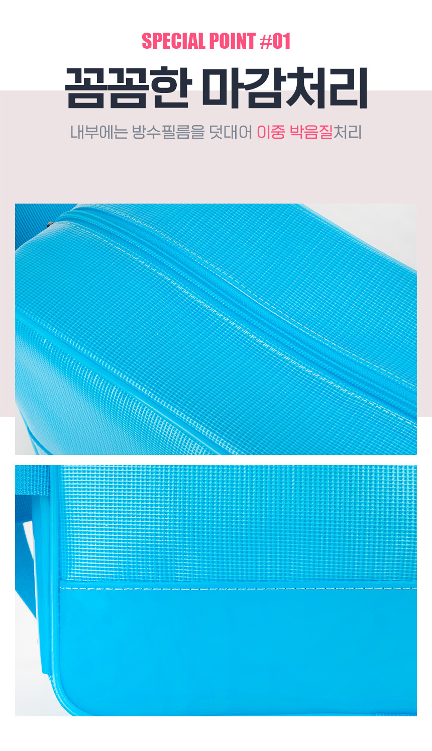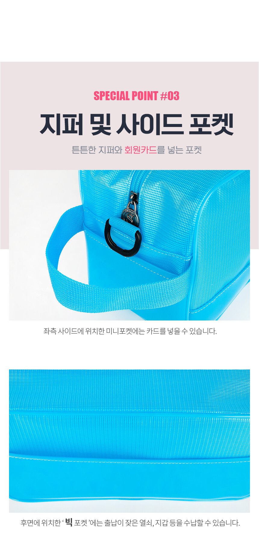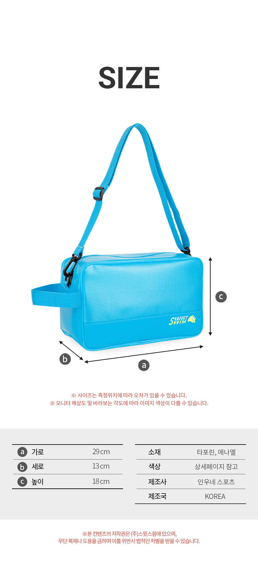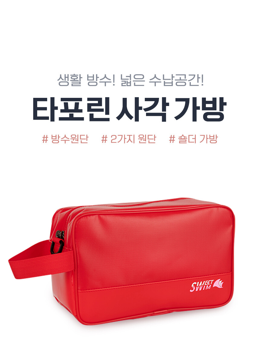 타포린과 고급스러운 에나멜의 조화, 간편한 어깨끈까지 있어 효율좋은 가성비 수영가방!