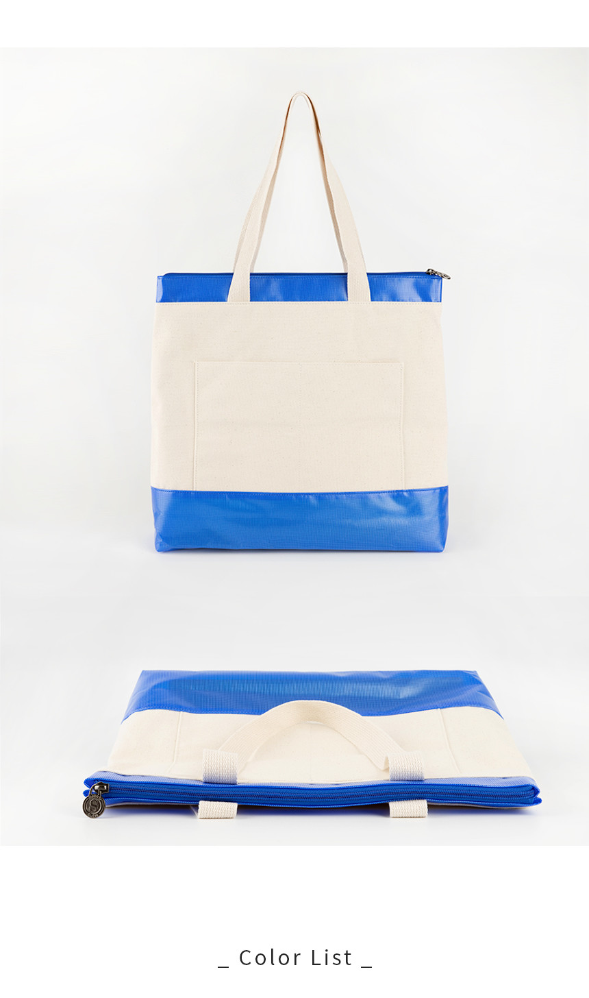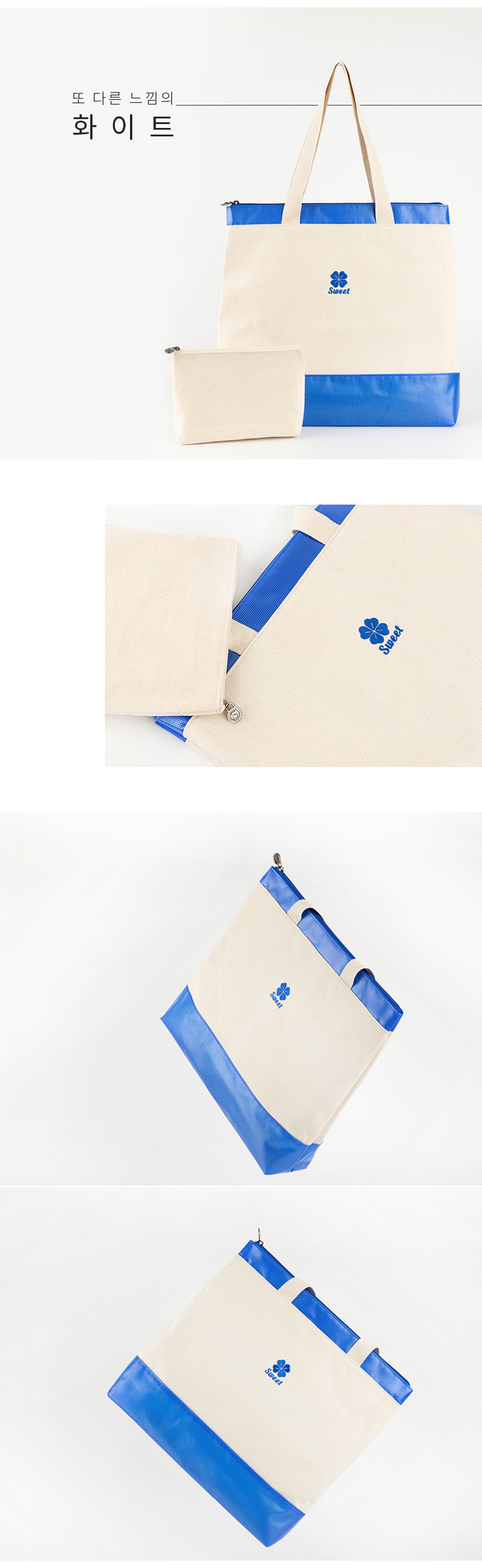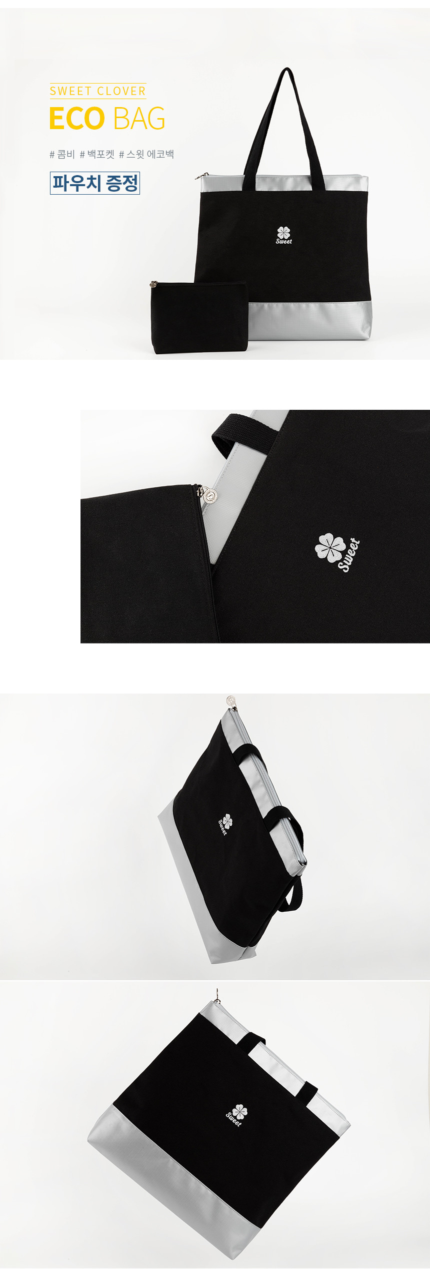 스윗 캔버스 배색 지퍼 에코백