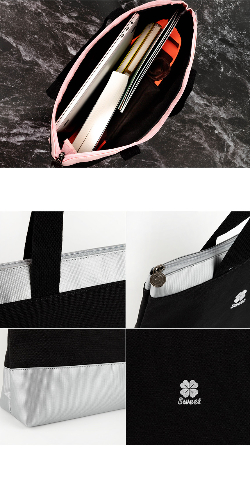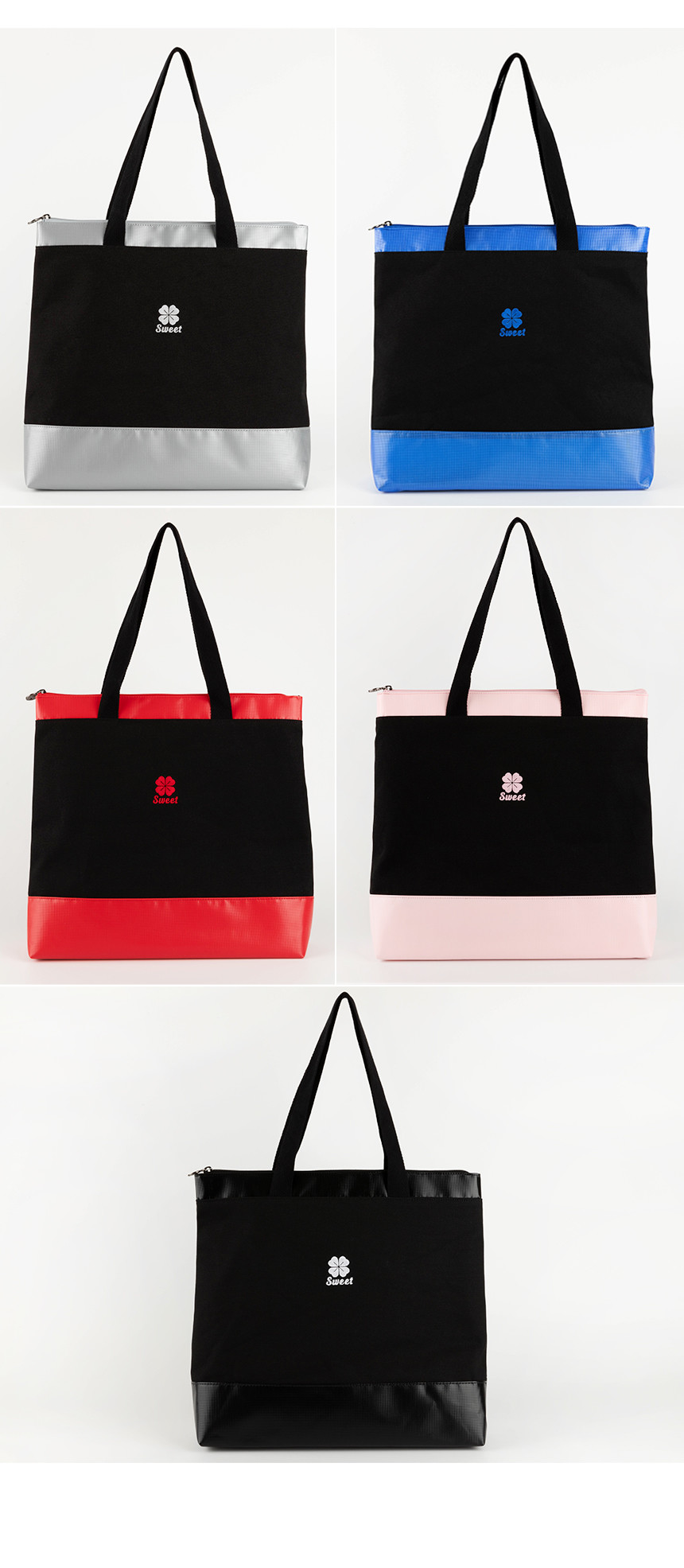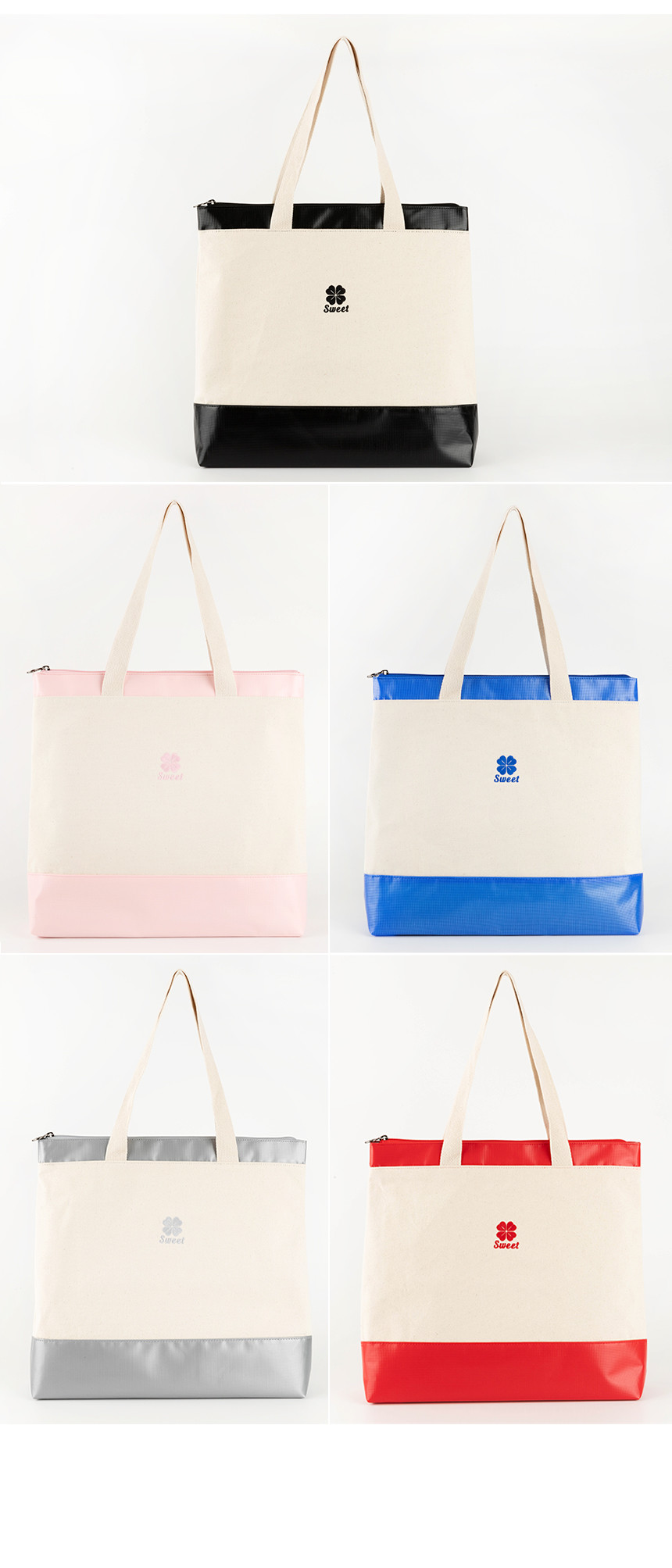 스윗 캔버스 배색 지퍼 에코백